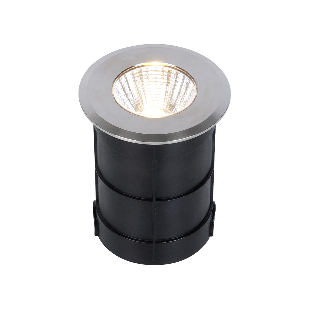 Lámpara de piso para empotrar, tecnologia led y material de acero inoxidable.