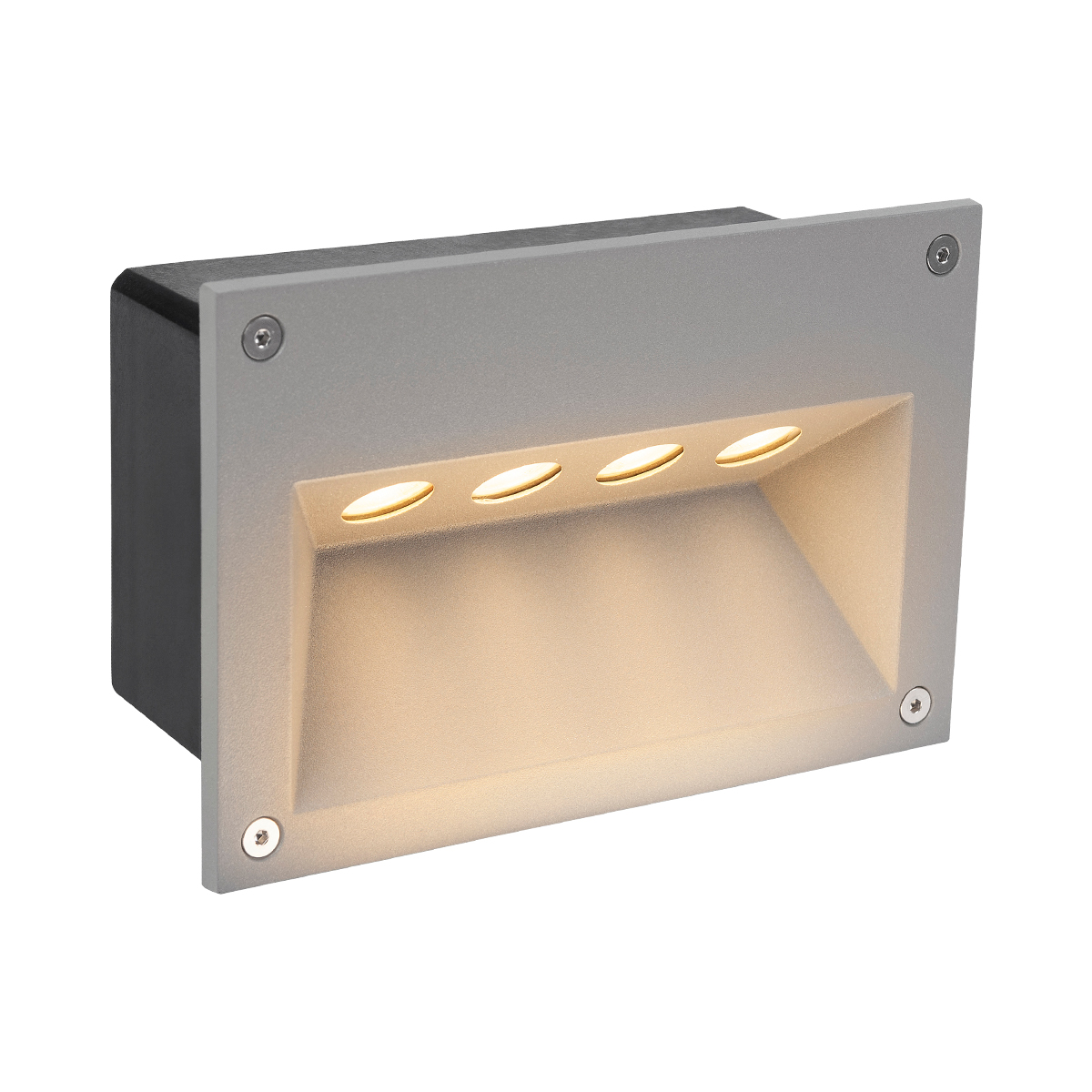 Luminaria de cortesía color gris, ideal para iluminar escalones y pasillos.
