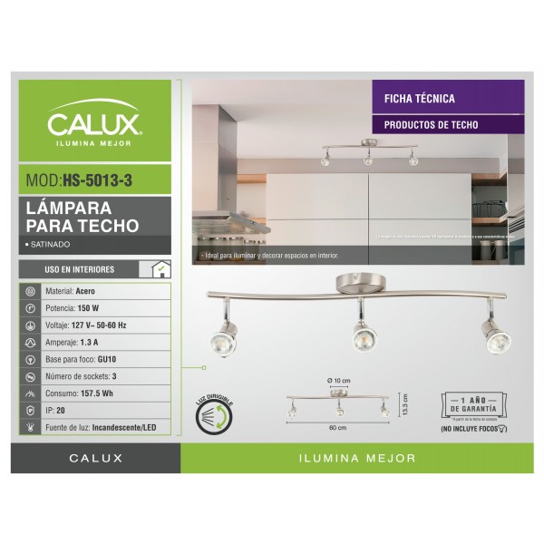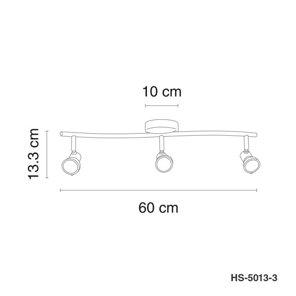 HS-5013-3 Lámpara de techo de tres luces dirigibles, la vuelven funcional para iluminar áreas especificas