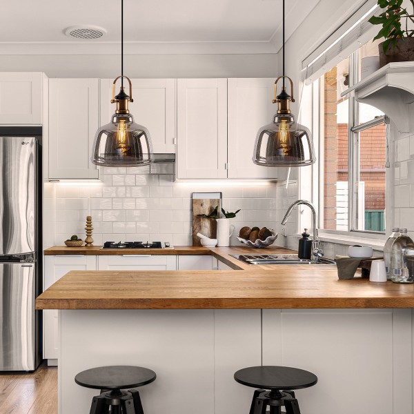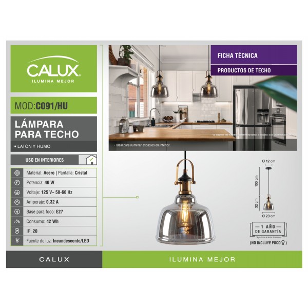 C091/HU Lámpara colgante de cristal color humo, el estilo nórdico industrial es ideal para resaltar cualquier ambiente