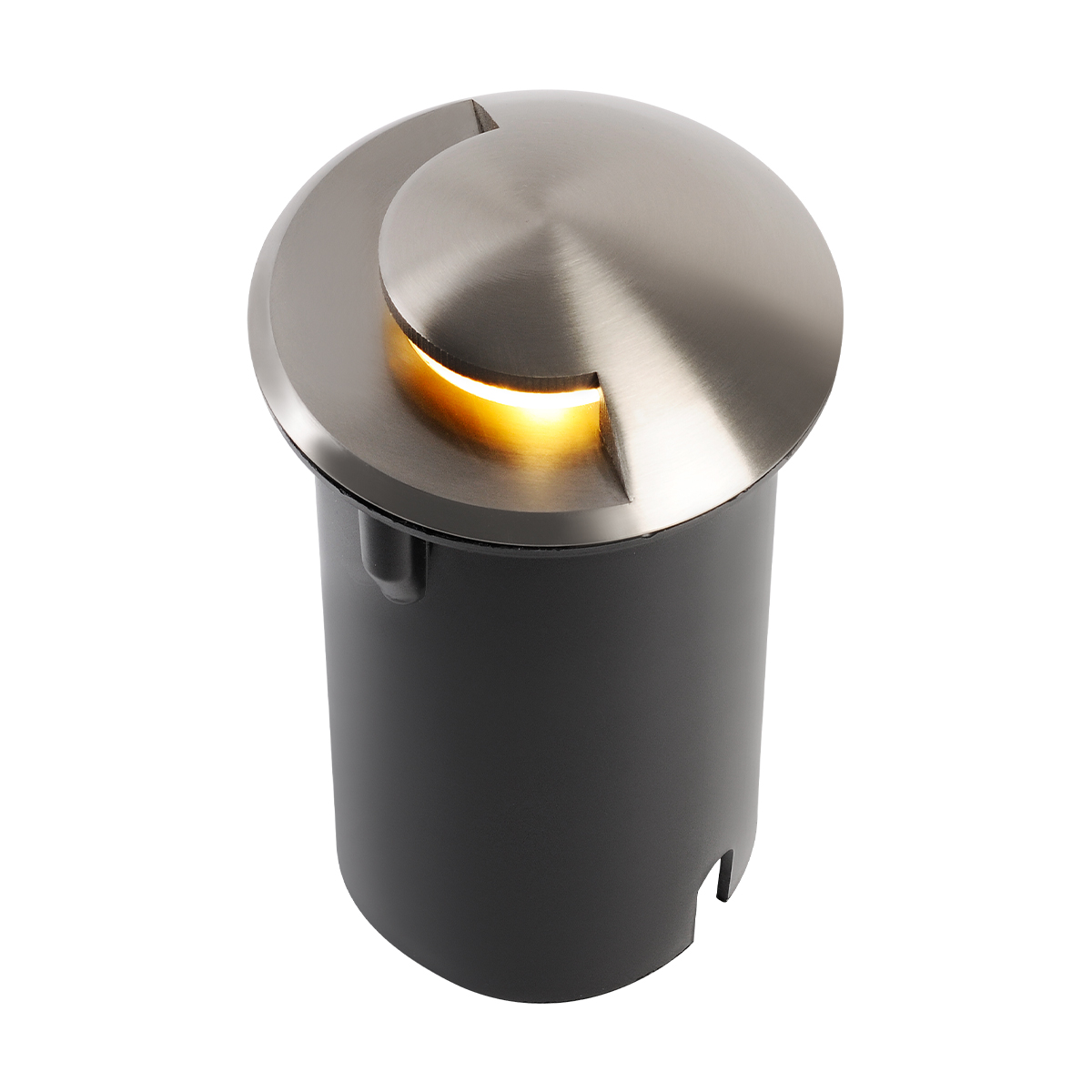 Luminaria para empotrar en piso de exterior, material acero inoxidable.