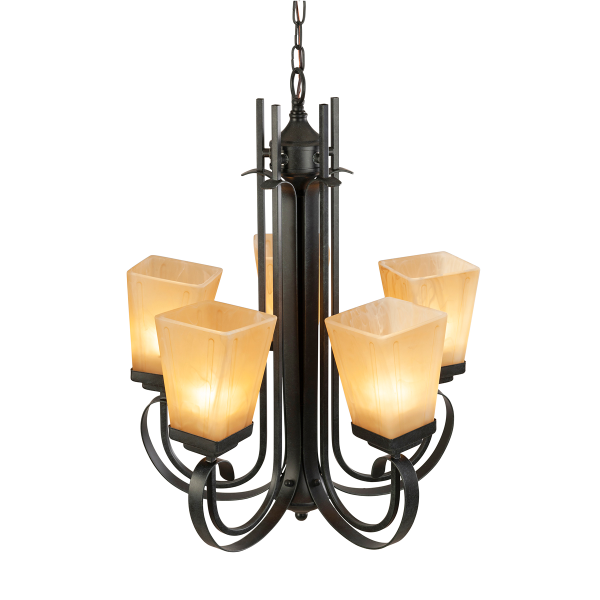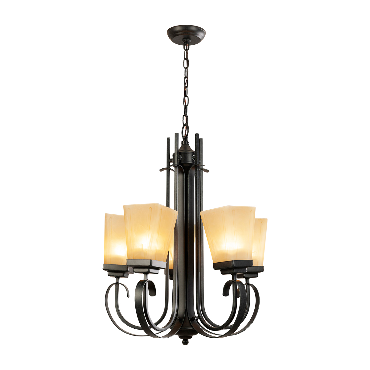 Candil suspendido de acero forjado estilo rustico de 5 luces.
