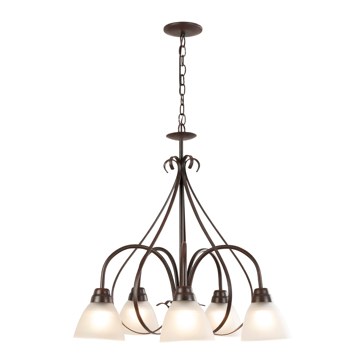 Candil suspendido de acero forjado y cristal terminado óxido.