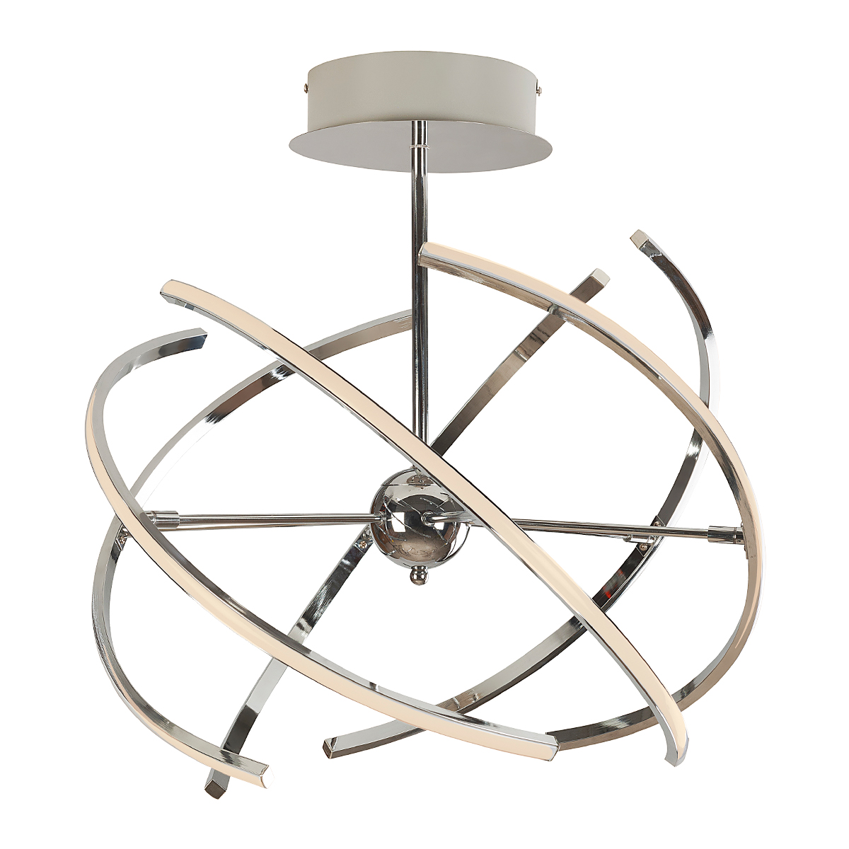 Lámpara elgante de LED para techo multiformas terminado cromado.