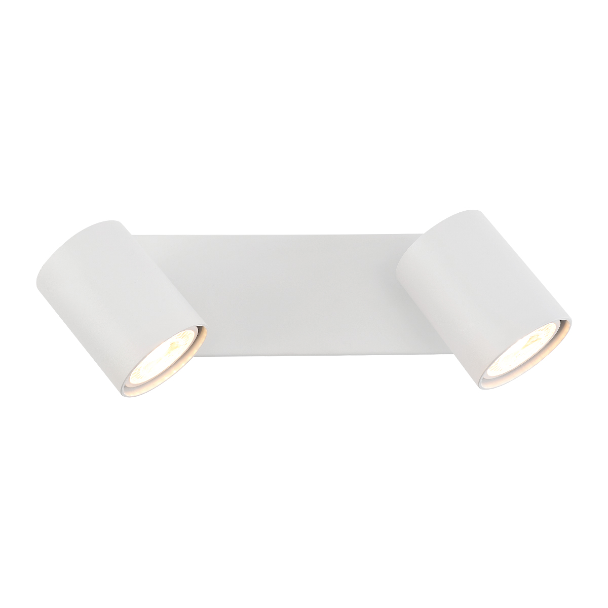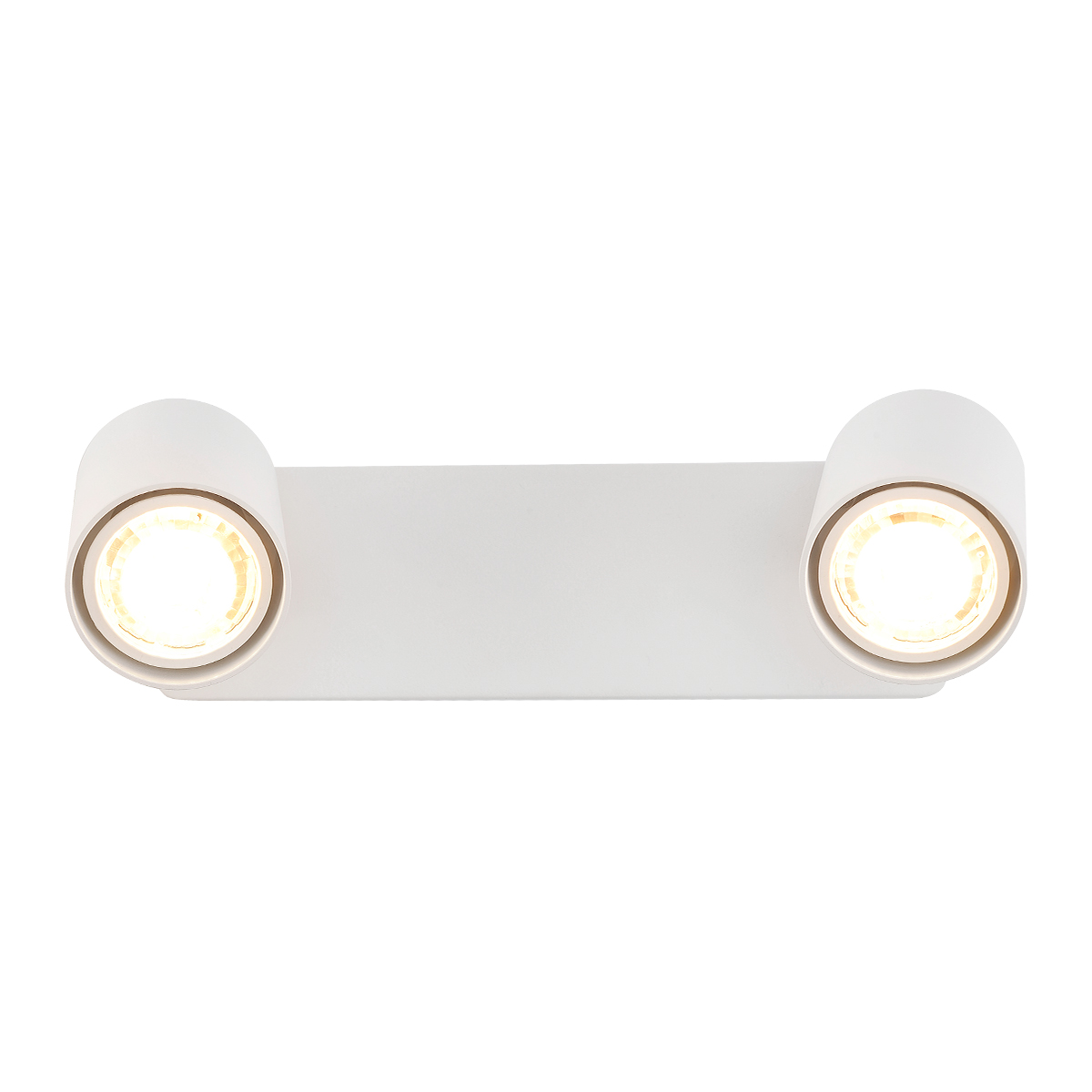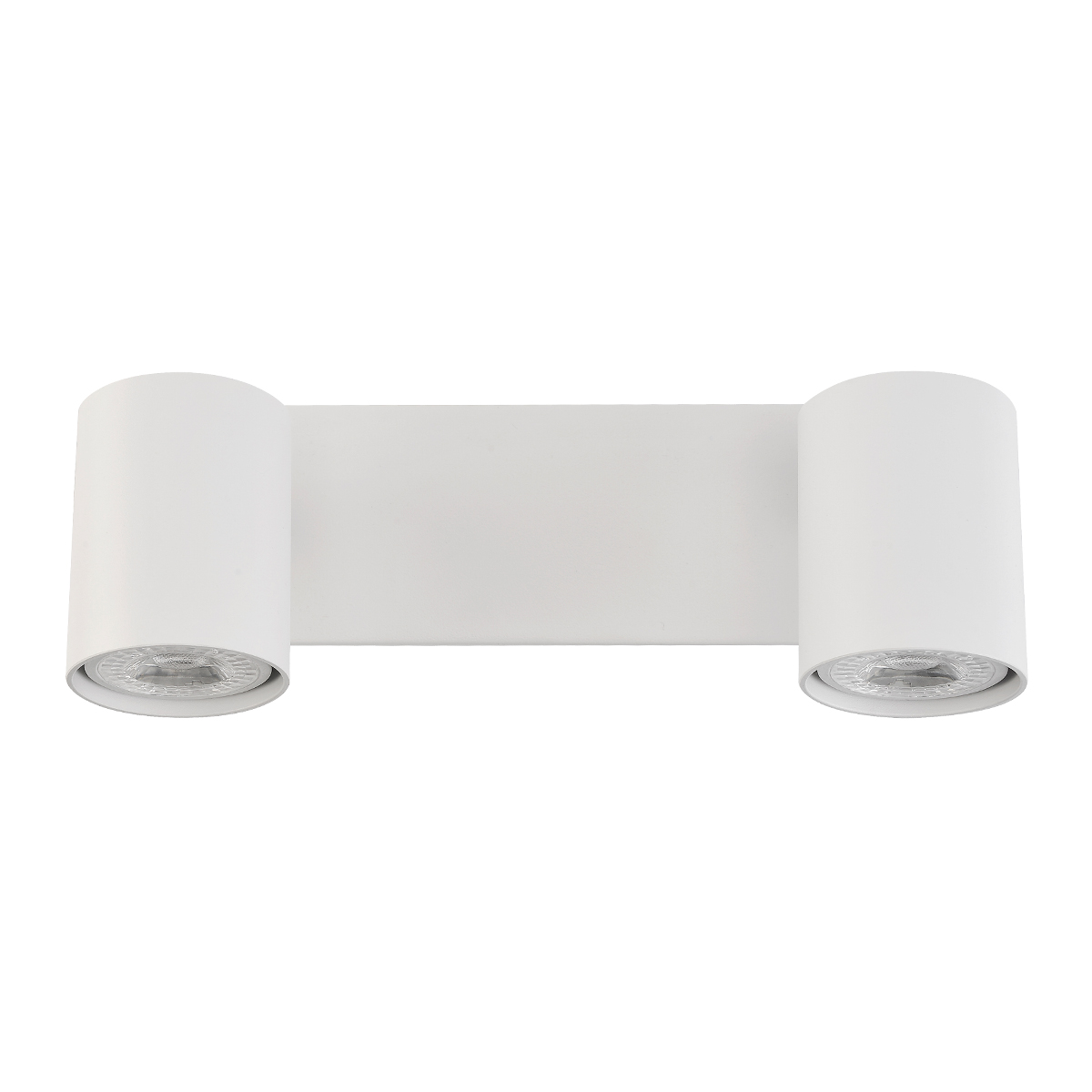 Luminaria blanca de sobreponer con 2 luces dirigibles para muro o techo.